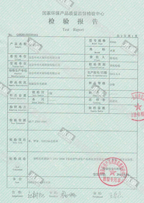木童家具除味劑效果檢驗(yàn)報(bào)告